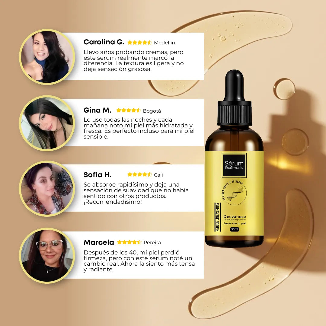 Sí, el Serum reafirmante se complementa perfectamente con tu rutina habitual. Aplícalo antes de las cremas o bloqueador solar.